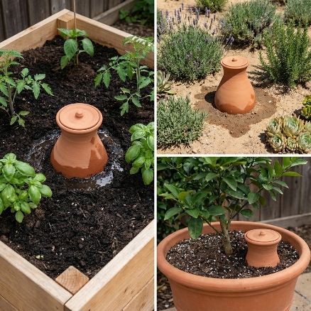 - Primer Riego: Rellena la olla de agua y tapa. Importante: La primera vez, riega también la tierra alrededor de forma manual. Esto «conecta» la humedad del suelo con la porosidad de la olla e inicia el ciclo de succión.