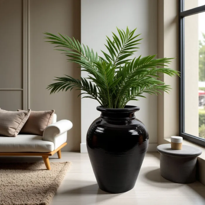 Vasijas decorativas para interiores: Ideales para salones, recepciones o espacios corporativos que buscan un toque diferenciador. Imagina una elegante tinaja dando la bienvenida en la recepción de un hotel boutique o destacando en el vestíbulo de un restaurante sofisticado.